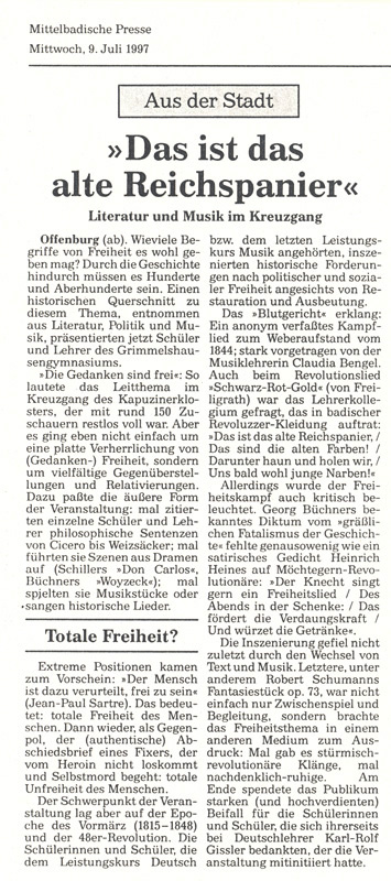Offenburger Tageblatt - Aufführungsbericht vom 9. Juli 1997